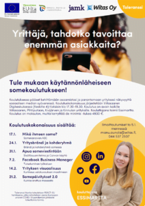 Koulutus on avoin kaikille Viitasaaren, Pihtiputaan, Kivijärven ja Kinnulan yrityksille. Kouluttajana toimii Essimartta. Koulutus on maksuton, mutta kerryttää de minimis -tukea 4800 €.