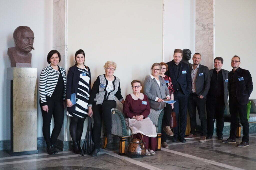 Pihtiputaan Mummo seurueineen vierailulla eduskunnassa 2017